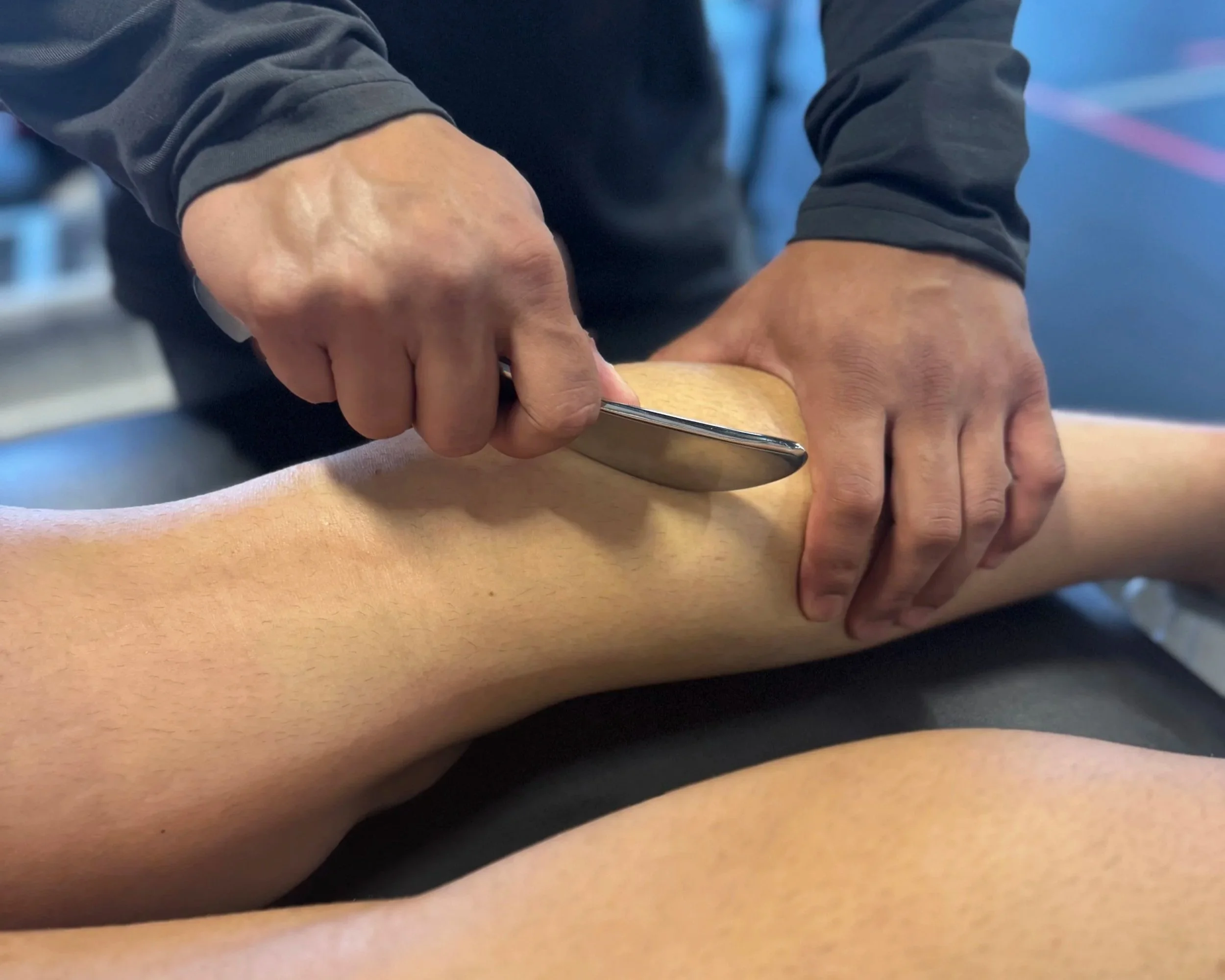 Scraping is another form of manual therapy used in our clinic to treat soft tissue injuries and dysfunctions. This modality is used to manipulate muscles, tendons and fascia to break down scar tissue, reduce muscle tension and promote healing. It stimulates a localized inflammatory response, increases blood flow to the area and promotes the natural healing process by triggering tissue remodeling and regeneration.